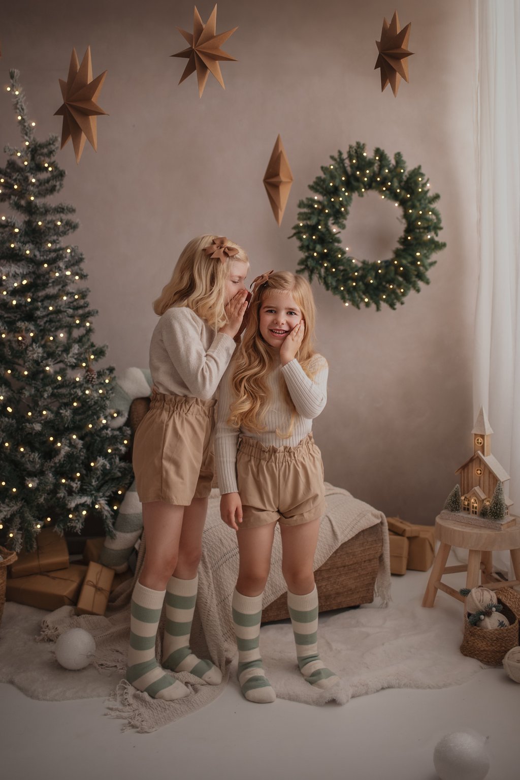 Step into the rustic charm of Christmas where warmth, laughter, and memories come together in perfect harmony. Imagine twinkling lights, soft textures, the scent of fresh pines, and the cheerful glow of the season embracing every hug and smile. A little pocket of holiday magic, preserved in memories that last a lifetime.